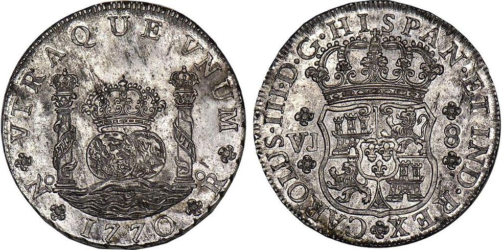 officially listed as a Carlos III Pillar 8 Reales 1770NR-VJ,