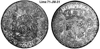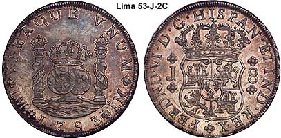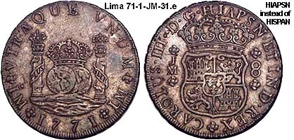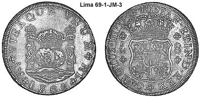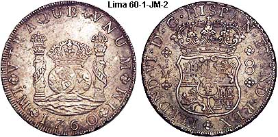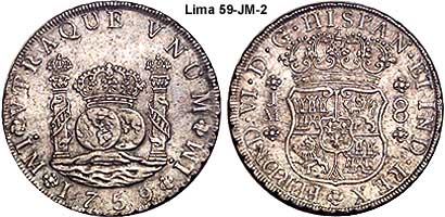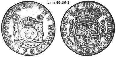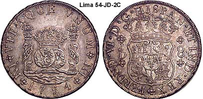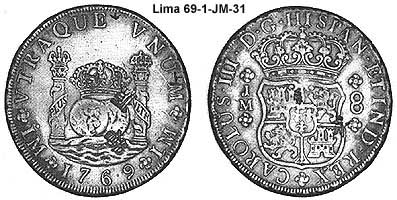 King of Spain and the indies/colonies).Lima is capital the Vice-Royalty of El Peru. The mint of Lima was also late in adapting the Pillar series. The mint was authorized in 21 Aug 1565 by Philip II. It was badly damaged by earthquakes in 1687 and 1747. It was not until 1752 that the Pillar types were struck.
