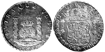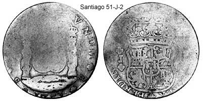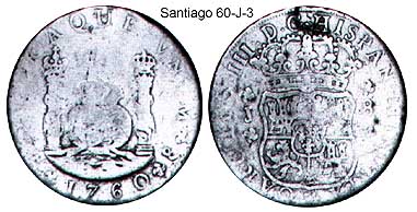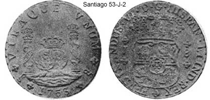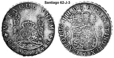 King of Spain and the indies/colonies).Santiago is the capital of the province of Chile, which was part of the Vice-Royalty of El Peru (1700's). The mint of Santiago was actually producing the colonial coinage even if it was still not owned directly by the King of Spain. It started producing the Pillar 8R in 1751.